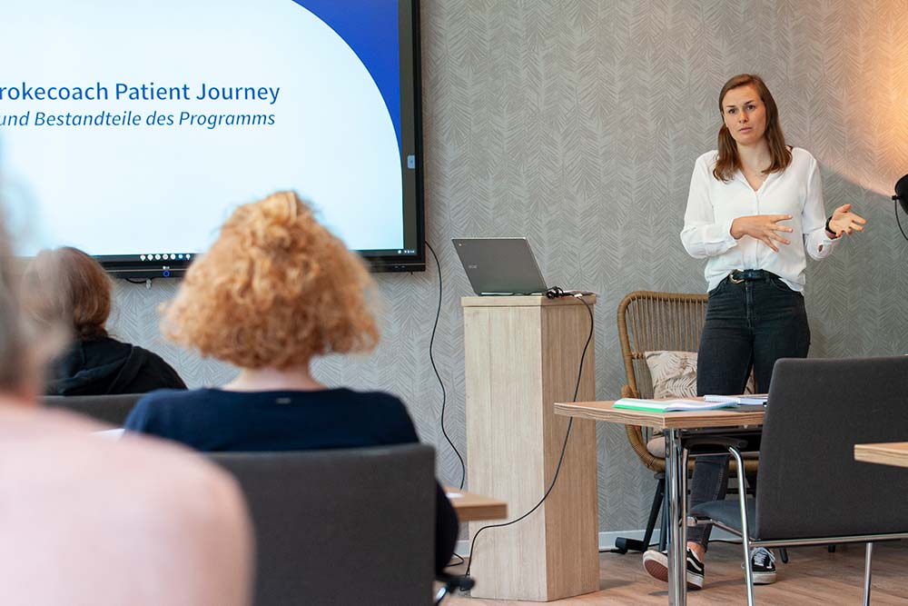 In our interactive training courses we train you to become a Neurocoach Digital Lab. You will learn how to use the Strokecoach training program. The theoretical background and the course of the program (NDL Patient Journey) are conveyed. You will also learn the central importance of coaching and the role of a NDL coach.